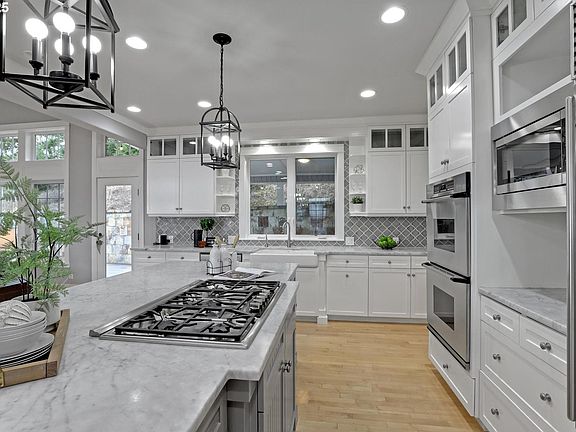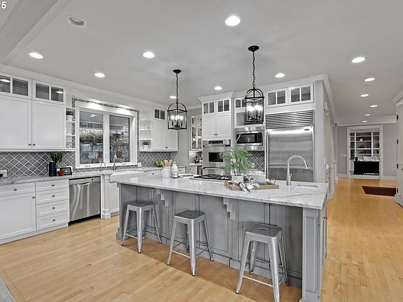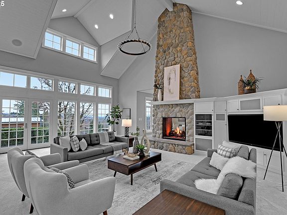 This eye-catching East Coast architectural beauty is an entertainer’s paradise, offering Coast Range views and daily sunsets. Located on a peaceful, level cul-de-sac elevated in the Northwest Hills adjacent to Forest Heights, this home offers elevated privacy and serene views.From the moment you enter, you will appreciate the craftsmanship and attention to detail. The kitchen and great room are grand and welcoming, featuring high ceilings, a floor-to-ceiling rock fireplace, and windows and doors on both sides opening to the outdoor Vinet. Just around the fireplace sits a dream-come-true game room with a full wet bar, wraparound windows, and another set of French doors opening to a picturesque covered outdoor living room.The living quarters are thoughtfully divided into the main home with three bedrooms, two baths, and a spacious bonus room, and the ideal guest or nanny quarters with two bedrooms and a bath, privately located above the game room area. This setup provides a potential separate living space for those needing multi-generational accommodations.The spacious primary bedroom is a true retreat, featuring a private balcony with sweeping views and a luxurious, spa-like bathroom.Outside, the home offers elevated privacy and serene views. For outdoor living, you can enjoy the sunsets from the covered outdoor patio. If you need a turf playground, look no further—the backyard will keep your feet (and your pet’s) clean while you barbecue on the other outdoor covered patio, just off the kitchen and ideal for dining. For riding bikes and playing wiffle ball, the level cul-de-sac is the perfect safe setting to watch kids grow.