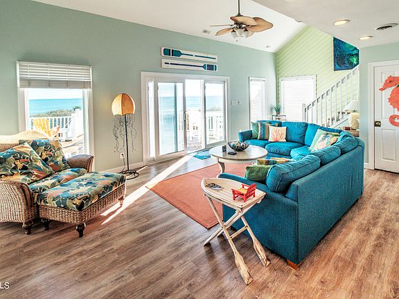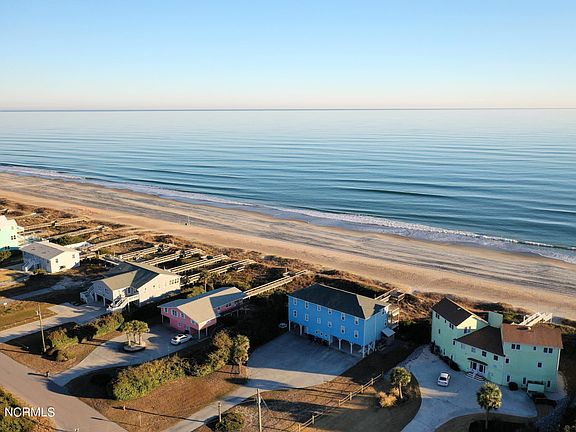 Emerald Isle NC Direct Ocean Front with 5 Bedrooms! 5 bedroom, ''Dealers Deck West'', a direct ocean front half duplex beach house with strong established rental income and panoramic ocean views, is conveniently located a short walk from the town's shops and restaurants. This lovely beach house has room to spread out with an open floor plan on the primary living level and a game room / 5th bedroom on the lower level. The wide spacious deck has room for all. 2021 rental income was $71k. Gorgeous views, including a lovely view of Bogue Inlet Pier where you'll have a front row seat for the fireworks on the 4th of July! Offered Furnished with 40k booked for Season 2022.