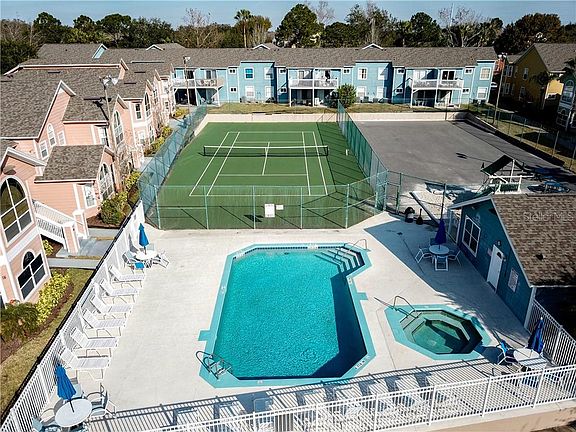 Fantastic opportunity to own one of the best located units in the popular gated community of The Villas at Island Club in Kissimmee. This lovely 3 bed 2 bath condo overlooks the pool, tennis courts and playground. This is a second-floor unit that has a floor plan that features an open concept with a large combination living room/dining room that boasts cathedral ceilings and large windows that let the natural light flow in. The galley kitchen overlooks the living area and plenty of cabinet space and a closet pantry. The master bedroom is roomy and has a walk in closet and the master bathroom has been remodeled and features a large walk-in shower. There's 2 more good sized bedrooms and the 2nd bathroom has a shower tub combination. The laundry closet is conveniently located in the hallway, there's an extra exterior closet for added storage and the property is being sold with all appliances!...The community is zoned for short term rentals so this property can be used as a vacation home, investment property or primary residence...The community has 2 heated pools, a hot tub, fitness center, tennis courts, picnic areas and a playground, all of this with a very affordable monthly condo fee! You can't beat the location, just minutes from Disney World, Margaritaville, loads of shopping and restaurants and all that Central Florida has to offer!