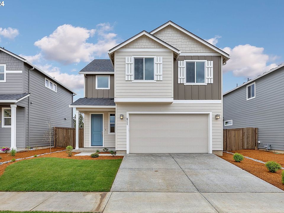 MOVE IN READY! Beautiful 3 bedroom home with spacious loft, 2.5 bathrooms, 2 car garage. Home features a great room with gas fireplace, 9ft ceilings on main level, quartz countertops throughout, white painted cabinets, gourmet kitchen with gas cooktop, a primary suite with walk-in closet, heat pump with A/C, front yard with irrigation, on a fully fenced lot! Community features walking trails, green spaces, and park areas. Sample images - actual finishes and colors will vary. Other homes also available. PLEASE VISIT SALES OFFICE TO TOUR HOMES @ 235 N 86th Pl, Ridgefield, WA. Open daily 11-5.