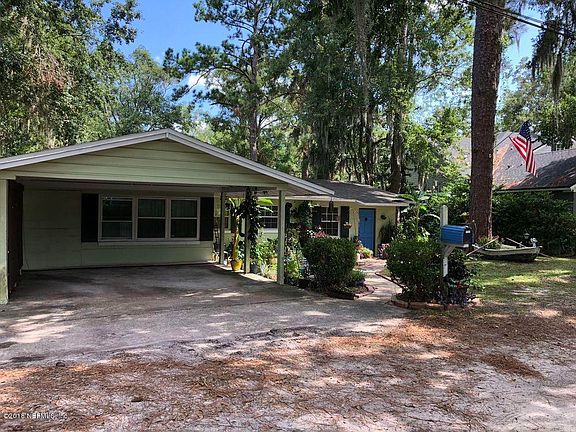 Truly unique, secluded and private waterfront home w/navigable access to the St. Johns. Picturesque wooded lot offers beautiful creek views and 116 feet of shoreline on Goodby's Creek. Brand new 20' dock. Kayakers delight! Well maintained home w/ many improvements & energy efficient features w/ very low utility. Home offers: open layout with spacious living areas and bedrooms, ultra insulated attic, energy star windows, plantation shutters, granite countertops, custom stained glass windows, hardwood & tile floors, effervescing tub in master bath, wood burning fireplace, lg custom deck just refinished, huge tree house, fenced in yard & storage shed w/ power. Brand new fully underground septic system and drain field. No HOA/CDD. Walk or kayak to Wicked Barley or Hooters