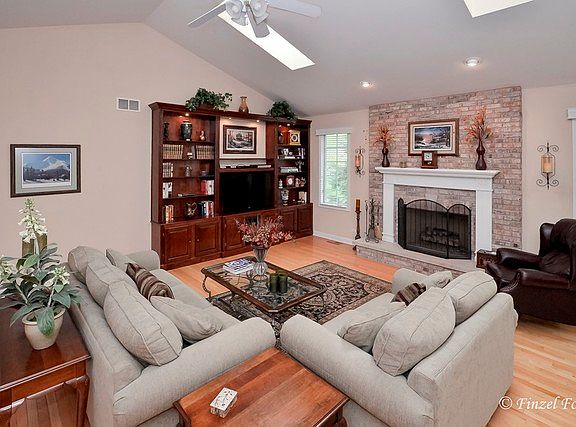 Welcome Home to your very own spacious custom Ranch with full finished Basement in the Private Shade Tree Subdivision. With today's popular open floor plan, this house has tons of natural light with many large windows and skylights! A gourmet kitchen with 42" cabinets with under cabinet lighting, island, granite countertops, and SS appliances. Large Family Room with Vaulted ceilings, built in bookcases, skylights and brick fireplace. Hardwood floors are located throughout most of the first floor. Spacious Master Bedroom with tray ceiling, walk-in closet, and En Suite that has a luxurious whirlpool, separate shower and dual vanity. Main floor has 3 large bedrooms, with the 3rd bedroom currently used as an office/bed. Unbelievably large finished basement with brick fireplace, wine cellar, and wet bar. Two additional bedrooms with full bath and European Shower in the Basement. This home has 4446 sq ft including finished basement. New roof installed in 2016. Blocks from the Lake!!