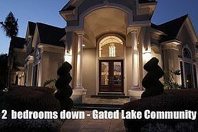 Exquisite custom home in the exclusive gated community of Sterling Gate Estates with a breathtaking view of the lake! This home sits on a corner lot with a fabulous 3-car garage & gorgeous landscaping! It has been remodeled with beautiful hard wood floors & wood on the staircase, raised living room, privacy front doors, plantation shutters throughout, custom draperies, updated light fixtures, interior paint, HAI Home Automation, security system with cameras & motion sensors, plus so much more!