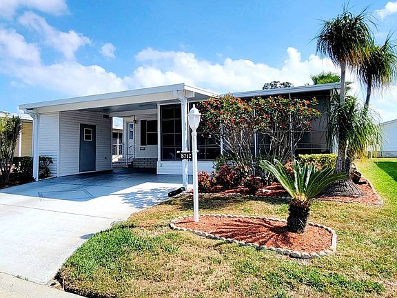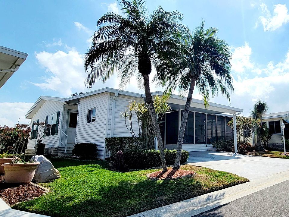 Check out this affordable GEM! 2-bedroom, 2-bath, 2-HUGE sheds! Motorcycle, kayak, paddleboard, golf-clubs? The HUGE (8x10) shed in back of the home will store it ALL! Fully furnished (option) home! This beautiful property features a front Lanai - perfect for hosting friends and family. New hot water heater, newer roof, bright sunny kitchen. Full size washer/dryer in between both bedrooms for easy access. Updated common areas throughout the community. Resort style living is what you will find in this full of life 55 private gated community!