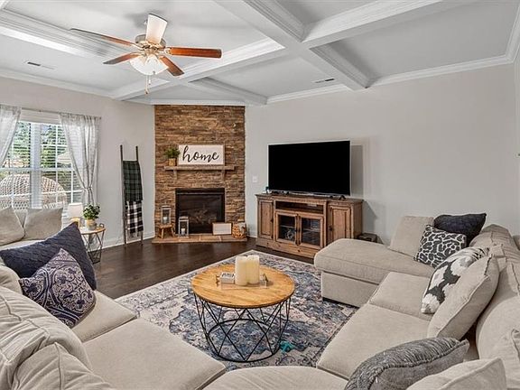 This is it! The PERFECT floor plan with an amazing .59 acre yard for entertaining as well! 4BR/3BA with the primary and two other bedrooms on the MAIN LEVEL! You will fall in love as soon as you enter this home and see the upgrades the sellers have added.Your eyes will be drawn to the dining room feature wall because it is the most beautiful shade of dark green ever! The dining room and primary bedroom have tray ceilings and the living room has coffered ceilings. The kitchen has white cabinets and granite that would suit anyone's taste! The kitchen has bar seating that is open to the eat-in area and living room. Don't miss the door across from the primary bedroom to go upstairs to bedroom #4. There is a flex space and a beautiful full bathroom upstairs as well! The lucky one that claims the upstairs will feel like they have a private suite! Don't miss the extended patio and fire pit area with mature trees as a backdrop! Hosting smores night will be in your future with this home!