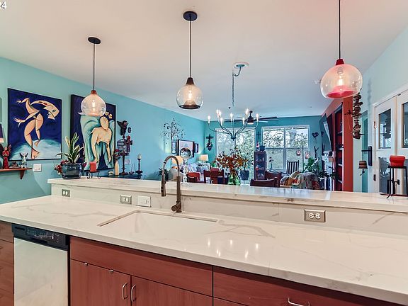Welcome to the Bridgewater Vista, where panoramic views of Forest Park, the iconic St. Johns Bridge, and the tranquil Willamette River greet you at every turn. This exceptional condo offers a prime location within blocks to the vibrant shops, cozy pubs, and bustling farmers market that define the charm of St. Johns.Enjoy the spaciousness and brightness of this southeast-facing residence, with its lofty 9-foot ceilings and abundant natural light flooding through expansive windows. Recently updated with modern touches, including sleek quartz countertops, fresh paint, and luxury vinyl plank flooring, this condo offers both style and comfort.Storage and convenience are at a premium, with two designated parking spots and two additional storage units included. Custom closets by Portland Closet Co. ensure ample space for your belongings, while atmospheric lighting by Esque Studio sets the mood for any occasion.Commute with ease to major employers like Adidas, Nike, and Intel, as well as the vibrant neighborhoods of Northwest, Downtown, and Southeast Portland. Whether you're admiring the sunset over Cathedral Park or exploring the historic charm of St. Johns, this condo offers a lifestyle of luxury and convenience that is truly unparalleled.