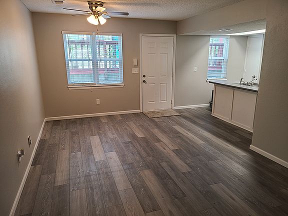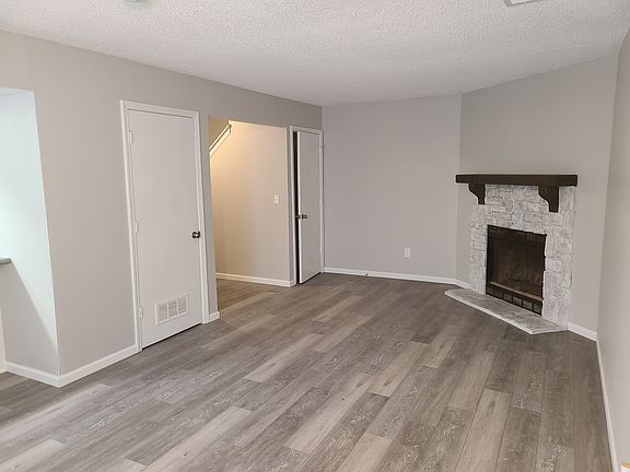 Welcome home to this cozy 2 bedroom 1.5 bath unit with open floor plan. Unit is recently updated. Enter the unit on first floor into a Large living room with wood burning fireplace. The kitchen has new cabinets and counter tops. Plush LVP flooring on the first floor makes cleaning a breeze. A half bathroom is next to the single car garage entry and stairs up to the second level. The master bedroom has a ceiling fan and large walk in closet while guest bedroom has a large two door wall closet. The full bath has an updated vanity, and tile work. There are washer and dryer hookups in a dedicated washroom off the upstairs hallway. Outside the front door is a concrete patio space. There is a shared green space in the back yard. This unit will be available June 1st. 12 month minimum lease is required. Tenant is responsible for utilities including electricity, water, and gas. Washer and dryer hookups are available in unit.