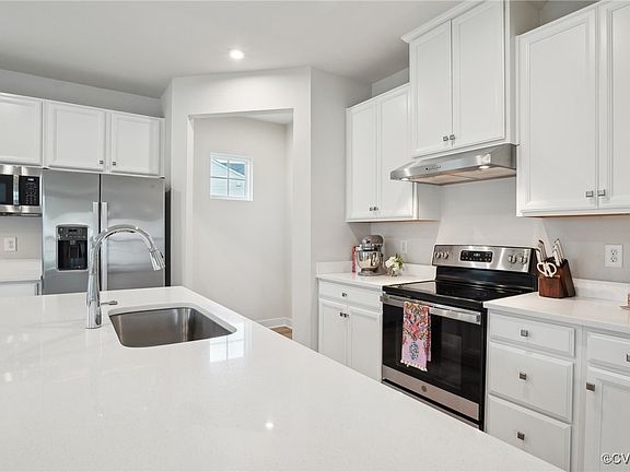 - Description: LVP, island, quartz, recessed, SS, white cabinets