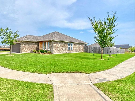 This Contemporary style home sits on a corner lot with a nice-sized back patio overlooking a fully fenced yard! Inside lies an open concept layout with tile flooring & carpet throughout the living space. The split plan allows distance between the primary suite and secondary beds/bath. The kitchen boasts stainless appliances with a gas range, quartz counters, a breakfast bar, and large window for that added natural light! The primary suite comes with double vanities, large walk-in closet, as well as a tile-surrounded stand-up shower! The Abbot Lake neighborhood amenities include a playground and splashpad for outdoor enjoyment! Moore Schools. Owner licensed.