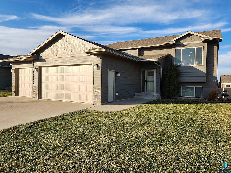 West side GEM! This 4 bedroom, 3 bathroom and 3 stall garage is nicely located on the west side of Sioux Falls. The main floor includes a gorgeous kitchen with beautiful birch cabinets with crown molding and an island open to the living room with a large south facing window providing lots of natural light. The dining room includes a sliding door to the second story deck. The master bedroom includes tray ceiling, walk-in closet & master bathroom along with a second closet! You will also find another bedroom and second bathroom on the main floor. As you go downstairs from the large foyer you'll enjoy the spacious entry to two more bedrooms, another full bathroom and the large family room with a sliding door to a private patio with vinyl privacy fence and no neighbors to the north! Close to shopping, gyms, dining and entertainment!