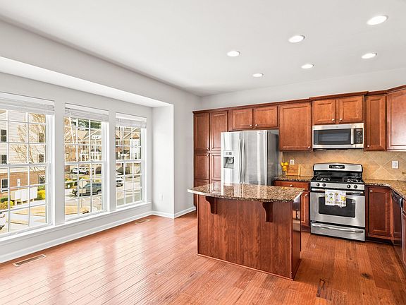 Gorgeous move-in ready 3 bedroom, 3 1/2 bath townhouse in Creekside at Tryon Village, in convenient Cary location. Second floor features bright open concept. Kitchen with stainless steel appliances with gas range, granite countertops with center island, large dining room, living room with fire place. All hardwood floors on the main area. Large deck overlooking lush green area. Primary and secondary bedrooms upstairs each have ensuites. Lower level oversized 3rd bd/bonus space w/access to covered patio. Two car garage with added storage areas and epoxu floors. Adjacent to walking trails and easy access to shopping/dinning. Heat pump replaced 2023 and HW heater only 2-3 yr old. Refrigerator, washer, dryer and televisions all convey!! A MUST SEE!!
