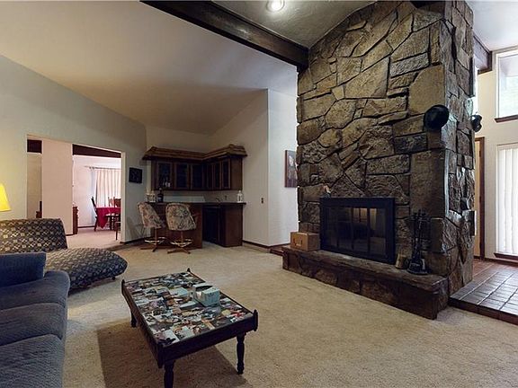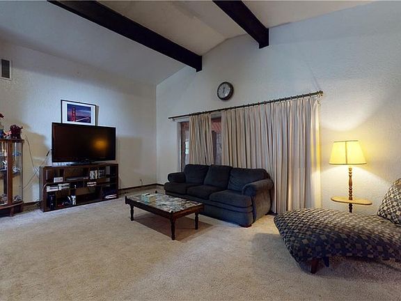 Beautiful home with vaulted ceilings throughout. Formal living is sunken and has a stone fireplace and a corner wet bar. Second living has a built in bookcase. Formal dining has a built in hutch. Kitchen has a built in microwave over the stove, an eating space, and lots of cabinets. Master has double walk in closets, double sinks, and a tub/shower combo. The second bedroom has a walk in closet and a full bath that is also accessed from the hallway. The bathroom has double sinks and new grey wood look tile on the floors and around the shower walls. The enclosed patio is 19x18 and has brick floors, a ceiling fan, vaulted ceiling, and window air, and just outside there is an open deck.