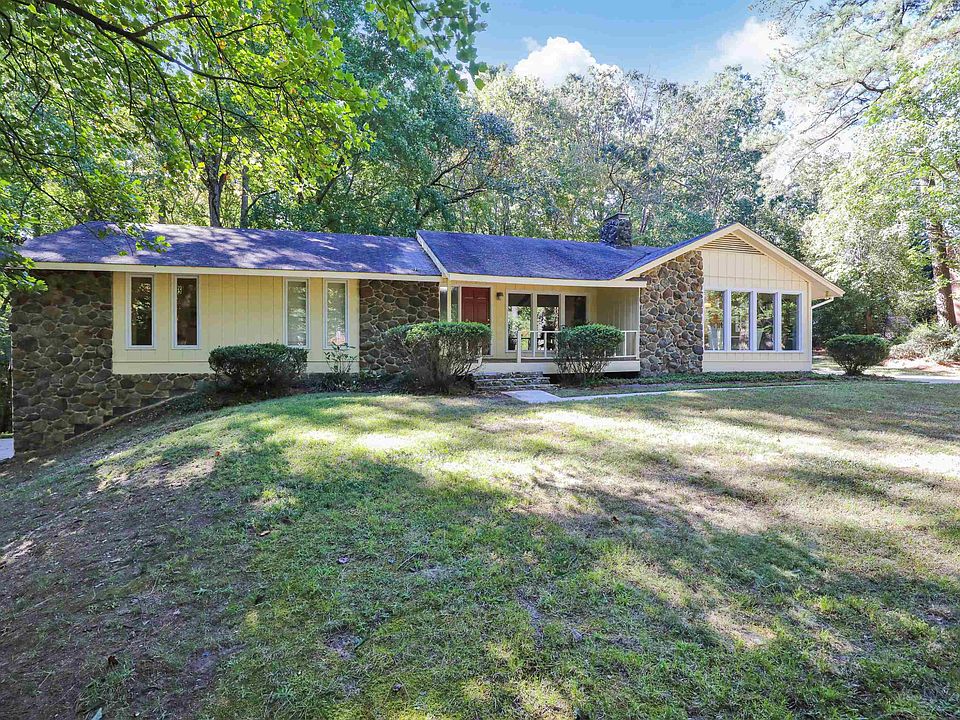 Welcome to 8713 Southampton Drive in the coveted Heritage Point community! Rare opportunity ranch with basement that has access from the outside! Complete with a kitchen, large living room with stone fireplace, pantry, and full bathroom in the basement, plus a one-car garage. The opportunities for using this space are endless! They don’t make homes like this anymore! Beautiful stonework on the outside with cedar siding. Spacious family room with huge stone fireplace, and beautiful granite counters in the kitchen. Tucked away off the road, enjoy the wooded backdrop on a full-acre lot. Just inside 540 with quick access to it, the location is convenient to so much!