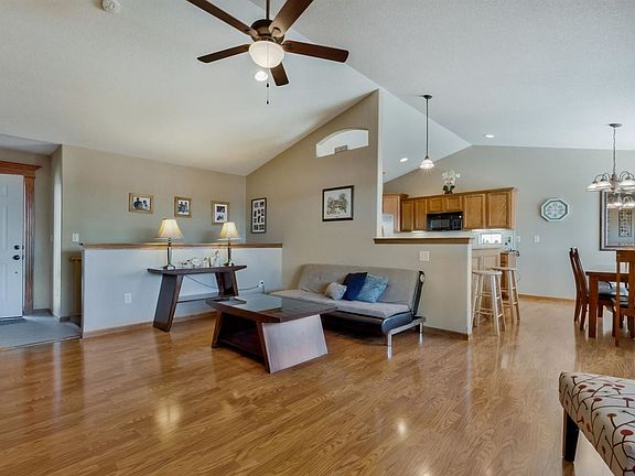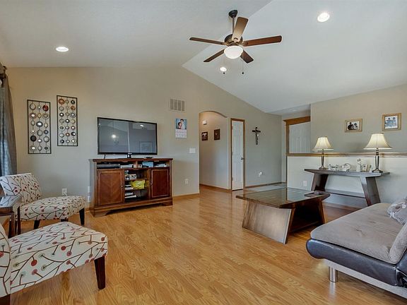 BEAUTIFUL home with an open floor plan located in MAIZE SCHOOL DISTRICT. WALKING DISTANCE FROM MAIZE SOUTH ELEMENTARY, MIDDLE AND HIGH SCHOOL. Close to the New Market Square shopping mall, Sams and restaurants. ALL SPECIALS ARE PAID OFF! This home features a tiled foyer entry to a large living room with knockdown vaulted ceilings, nice ceiling fan, lots of recessed lighting, wood laminate floors, architectural details and a triple window that brings light to the house. It also has a door leading to the deck. The spacious dining room has also a triple window, wood laminate floors and space for a large dining table. The kitchen has knockdown vaulted ceilings, eating bar, pantry, staggered cabinets with crown molding, under cabinets lighting, back splash with a glass inset accent, an instant hot water dispenser and all kitchen appliances are included. Very nice master bedroom with vaulted ceilings, ceiling fan, walk in closet and a master bathroom. Master bathroom has a tile flooring, double vanity and nice light fixtures. Second bedroom has vaulted ceilings and a high accent shelf above the window for more storage or decoration. Hall bathroom has a high glass block window, tile floors and nice light fixtures. Main floor hall has wood laminate floors. Full finished view out basement with large Rec/fam room with a modern gas fireplace, one bedroom, one full bathroom, storage, wet bar and a built in desk or study area. Plenty of space for a pool table! The basement room is large and has a walk in closet. Storage room has built in shelves, a closet and lots of space for organization. Large covered deck with TV hook ups, perfect for entertaining! Very nice fenced backyard with new concrete patios in both sides of the house. Rock landscaped area under deck. Main floor laundry room with built in ironing table. Good size car garage with built in cabinets and shelves, smartphone garage door opener, ceiling storage and ceiling bicycle hook ups. New water heater, high-efficiency HVAC, newer class 4-IR roof shingles and new paint in some rooms. Enjoy all the amenities in this neighborhood such as the swimming pool, playground, and greenbelt.