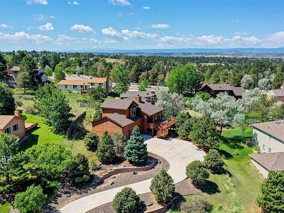QUICK POSSESSION on Exceptional 1991 Updated Pinery Custom 2-Story Offering 3 Beds, 4 Baths and 2,731 Finished Sq. Ft. Newer Carpet, Windows & Sliders. Large Greatroom with Gas Fireplace Open to Kitchen with real Hardwoods, Natural Gas kitchen stove, Stainless Refrigerator, Slab Granite and Dining area. 2 Bedrooms and 2 Full baths on Upper level and 1 Bedrooms & 3/4 Bath in Lower Walkout level. Home with Oversized Attached 3 Car Garage with large outside concrete Parking Area, built in Shelving, storage and Lg Work Bench area. Parking for 4-6 Cars on Concrete Driveway. Home & Property have been very nicely updated and well cared for. Beautiful hilltop setting with full Panoramic Views of the Front Range, Mtn Evans, Longs Peak, Pikes Peak, DTC and Incredible Daily Sunsets. Lots of outside Deck space for Entertaining as well as personal R & R. Roof, Furnace, H2O Htr, Refrigerator and all Appliances are believed to be in good condition and working order but w/o warranty. Well located in the Pinery 27 Hole Championship Golf course Community which consists of all Custom homes with Mature trees and larger irregular sized .25+ acre lots. Only minutes to all shopping including Groceries, Shopping and Restaurants.