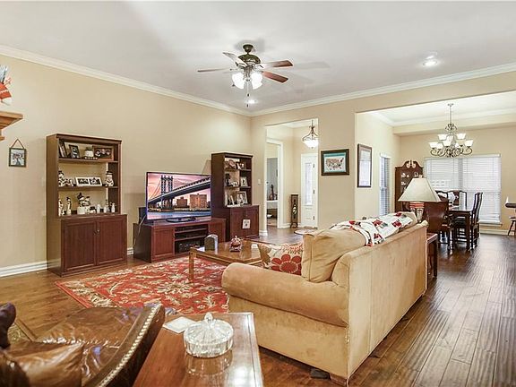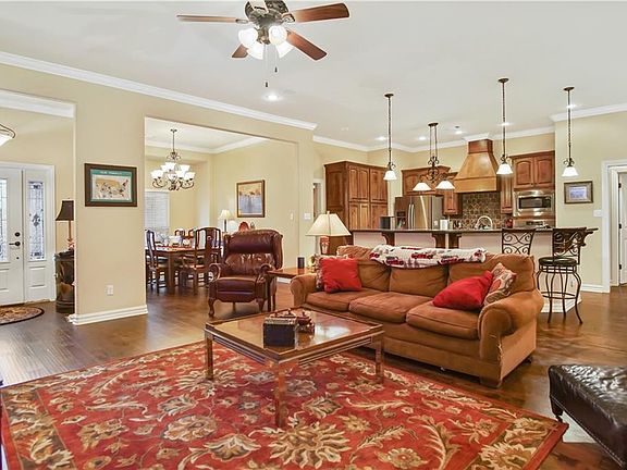 Custom one level with split plan. Open Kitchen, dining, and breakfast areas to living area with built-ins and fireplace. Quartz countertops. Hardwood flooring. Laundry room with built in ironing board, folding table, & sink & connects to Master Closet. Office or study. Beautiful backyard with inground pool and view of the walking trails. Home has been Pre-Inspected and offers 2-10 Home Warranty.