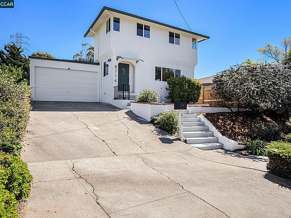 Located in highly coveted Country Club Hills, this lovely home with sweeping bay views has been newly renovated top to bottom and is move-in ready! This 1,863 sq ft, 4 bedroom, 2 bath home has all new exterior and interior paint, carpet, lighting fixtures and gleaming hardwood flooring. On the main level you will find a formal living and dining area with picture window and wood burning fireplace, all leading to updated eat-in kitchen with new gas stove top, new microwave, built-in oven, stone counters, laundry closet and slider to back patio and split-level yard. Primary bedroom is also located on the main level with remodeled bathroom with vanity with quartz counter, shower and designer touches, second bedroom and an office with skylight and updated hall bathroom with vanity with quartz counter & shower over tub. Upper level has 2 bedrooms, each with beautiful views and fun sitting area. Relax, entertain, garden or play in your two-level backyard with lush trees and plants. Zoned for Kensington Hilltop School.