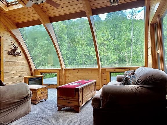 Unique quality built 3 bedroom, 2 bath completely furnished home nestled on 18.28 +/- acres. It is only a hop, skip and a jump from Tappan Lake. This one-of-a-kind home features white knotty pine woodwork from floor to ceiling. The open concept floor plan is truly amazing and is perfect for large get-togethers. You will love entertaining in the large chef's kitchen complete with appliances. The sun room is surrounded by glass windows and overlooks the newly renovated stocked pond and beautiful scenery. This home also features a 30X30 oversized attached garage. The possibilities with this property are endless! Whether you are looking for a weekend getaway or place to call home, your story begins here!
