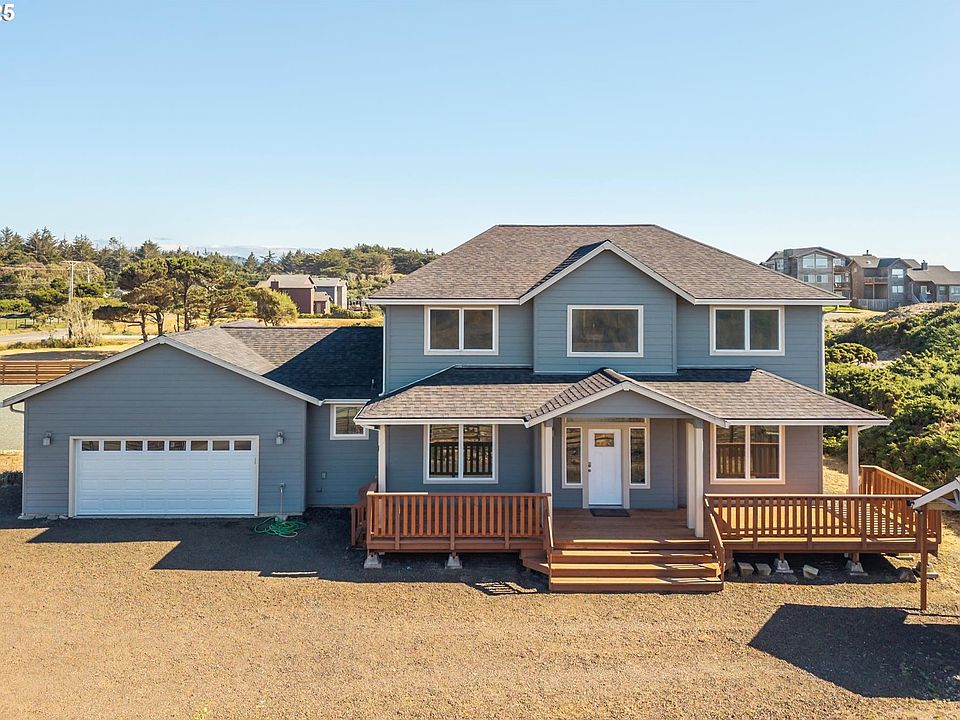 Immaculate Coastal Home on Vesta Street, Bandon, Oregon2,600+ Sq Ft | 2 Stories | Near Beach Access | 4 Beds/2.5 Baths Wrap-Around Covered DeckExperience the best of the Oregon coast in this stunning two-year-old home, perfectly maintained and in like-new condition. Located on the beach side of Beach Loop Drive, this spacious coastal retreat sits just a short stroll from the Mars Street beach access point—one of Bandon’s most beautiful and secluded stretches of shoreline.With over 2,600 square feet of thoughtfully designed living space spread across two levels, this home offers comfort, style, and functionality. The main entry welcomes you with soaring cathedral ceilings that flow into the open-concept kitchen and dining area, creating an airy, sun-filled heart of the home. Granite countertops, quality cabinetry, and a generous layout make the kitchen ideal for entertaining or everyday living.The home’s design maximizes indoor-outdoor living with a covered wrap-around deck, providing protected seating year-round to soak in the fresh ocean air and views. Whether you’re enjoying a morning coffee or watching the sunset, this space is your front-row seat to the best of southern Bandon.Granite-appointed bathrooms, spacious bedrooms, and flexible living areas make this home ideal as a primary residence, vacation getaway, or investment property.Don’t miss this rare opportunity to own a turn-key coastal home in one of Bandon’s most sought-after locations. Schedule your private tour today