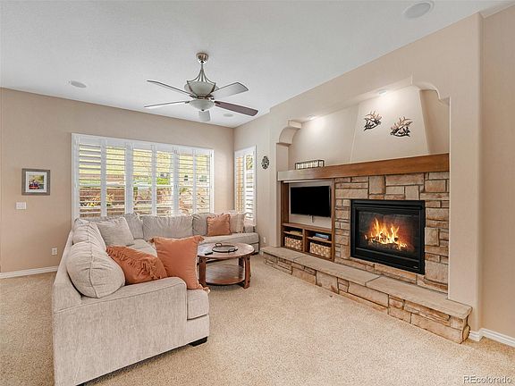 Spacious 3,000 sf ranch style home located on a private/quiet cul-de-sac sitting atop the Whisper Creek neighborhood. Located off Indiana St. with close proximity Boulder, Golden, Denver and the Front Range foothills. 10 minute walk to the Village at Five Parks which includes local restaurants and shopping. 3 minute drive to King Soopers, CVS and Freedom Street Social. This beautiful home features 4 bedrooms (2 main level, 2 basement) and 3 full baths. The entry opens up to the kitchen, living area and office with built-in desk cabinets. The main level is adorned with plantation shutters in addition to a stone gas fireplace. In the kitchen, there is a double oven, an island, granite countertops, hardwood floors, a breakfast nook and plenty of storage. On the main level, you are welcomed by a large master bedroom with a 10 foot tray ceiling, an en suite 5 piece bath and walk-in closet.