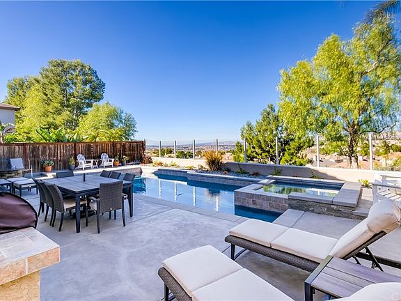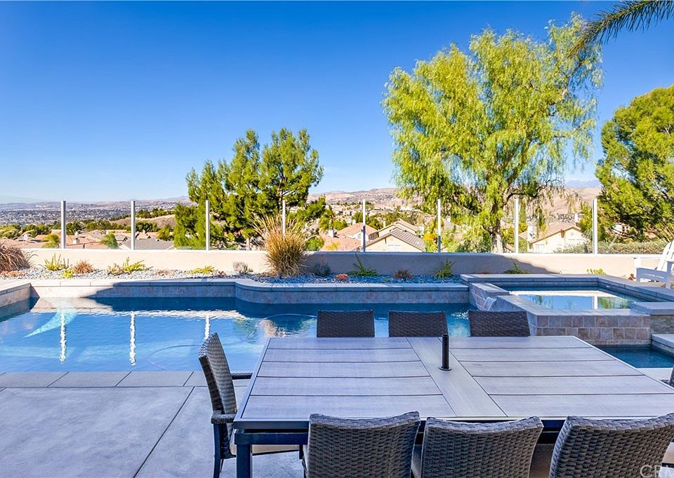 Here is the home you have been waiting for! This lovely pool home offers amazing city, mountain and sunset views, you can even see LA on a clear day. This home has been upgraded and remodeled throughout and features 3 bedrooms, 3 baths, plus a large loft, which could be converted to a 4th bedroom. It also features newer paint, and real wood floors throughout the down stairs. The newly remodeled kitchen, offers a large center island, white cabinets with soft closing drawers, quartz counter tops, with subway tile back splash, stainless sink, faucet, and new stainless appliances. The over sized family room features extra recessed lighting, ceiling fan and custom built in surround sound speakers. The bathrooms have been newly remodeled with white cabinets, quartz counter tops, sinks, faucets, and lighting fixtures. The spacious master bedroom offers a ceiling fan and double walk in closets with organizers. Other upgrades include plantation shutters throughout, new Nest thermostat, extra cabinets in the garage, water softener, ring security system with camera's, Sunrun solar, new awning, and a new 5 ton AC. The highlight of this beautiful home is the new pool built in 2019, brand new built in BBQ with mini fridge and firepit. This is the perfect home for family gatherings, entertaining and back yard BBQ's. It has all the features you could ask for.