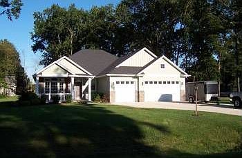 Stunning detail graces this custom built Craftsman-style ranch home on wooded 1 acre lot. Wonderful blend of cherry stained hardwood floors, upgraded neutral carpeting & ceramic flooring, accented by high ceilings throughout, wood trim, recessed lighting & solid wood doors. Marvelous formal DR & LR's. Beautiful kitchen w/cherry stained cabinets & stainless steel appliances is open to the great room. Perfect for family time or entertaining, the great room features a gas fireplace w/cutout for plasma TV & built in speakers in the 11' ceiling. Grand master BR ste has been soundproofed & includes; french doors, his & her closets including walk-in, wrap around ceiling shelf, full body-spray tiled shower, whirlpool tub & solid surface dual sink vanity. The den has hardwood flooring & could be used as 4th BR. 3 car garage w/pull down attic storage. Concrete covered front porch & large rear patio. Nestled in quiet neighborhood off St Rd 49. Wrought iron fencing & dog pens don't stay.