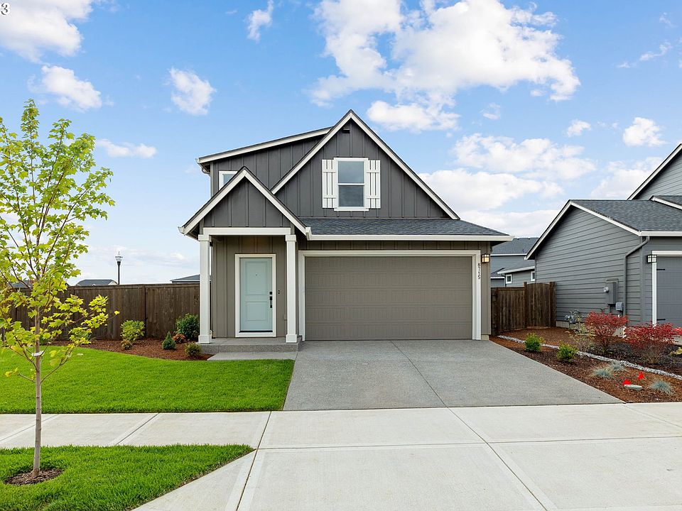MOVE IN READY! Welcome home to GREELY FARMS, a brand-new community with acres of wetlands, walking trails, parks, playgrounds, covered picnic areas and mountain views, all within easy access to I-5 in Ridgefield. This light and bright home features a primary suite on main with custom finishes throughout. The cottage style layout showcases laminate flooring thru entry, living and kitchen space with built in SS appliances, quartz countertops and white cabinets. The primary suite features quartz countertops with dual vanity and a huge walk-in-closet. Upstairs shows off an impressive loft/office area with secondary full bath w/ quartz countertops. Two bedrooms are located on either side of the office/living space area as well. Lots of high-end finishes elevate the interior of this home while the outside features a fully fenced backyard. This home is complete with A/C and a gas fireplace, too! Pictures are of actual home. Call for a tour today!
