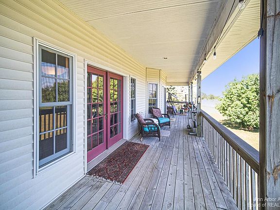 With room to spread out inside and out, this exceptionally well built home is sure to please. Located off a paved road on 5 lovely acres just west of the Village of Manchester. Enjoy sunrises and sunsets from the front and rear covered porches. Plenty of room for toys & hobbies in the 3-car garage and the incredible 1,600 sq ft heated pole barn. Inside find a warm & inviting home thoughtfully designed for natural light & comfort. 1st floor primary bedroom suite plus additional bedroom with full bath. 2-story great room w/ gas fireplace. Eat-in gourmet kitchen plus formal dining room. Laundry, half bath and a butler's pantry round out the first floor. Upstairs find 2 bedrooms, full bath, and loft sitting area. The expansive walk out lower level includes kitchenette, living room w/ 2nd gas fireplace, 4th full bath, theatre area, and more. Built for efficiency and comfort the home feat. 2x6 construction, R60 insulation, beautiful wood floors. Enjoy the peaceful rural residential setting located just 5 minutes to the Manchester Market, Frank's Place and the Village Tap. Explore the glory of nature in nearby Sharon Mills County Park, Watkins Lake State Park and several preserves. Easy commute to Adrian, Chelsea, Jackson and Ann Arbor.