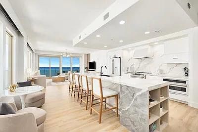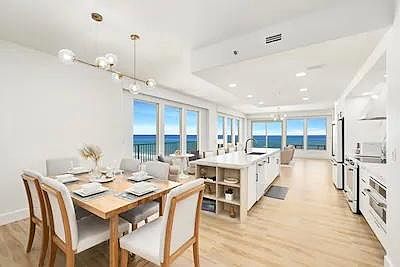 Welcome to BEMI Breeze, a newly renovated luxury accommodation nestled on the white sandy beaches of Panama City Beach. This property's travel-enthused owners collaborated diligently with Casanoah Design Group to create a space of opulence for your escape from reality. Meticulously detailed, this property radiates luxury and is a prized find for any type of traveler. Ample windows wrap the exterior walls which capture and enhance Florida's ever-changing display of colors from daybreak to sunset. Mood boosting attention to detail throughout every inch of this tranquil design will make all the difference in finding comfort and coziness in your temporary home away from home. BEMI Breeze boasts everything brand new for you to enjoy: porcelain wooden tile flooring, a custom kitchen with marble countertops and Cafe appliances, stone feature walls, resort-style bathrooms, designer lighting and fixtures, custom bunks, chic furnishings, plush bedding, and Smart TV's throughout. Sleeping accommodations at BEMI Breeze combines unparalleled comfort with a timeless sumptuous design. Warm neutrals and lavish earth tones adorn the Primary & Guest Suites which are equipped with plenty of clothing storage. The custom bunk room provides a seclusive yet easily-monitored space for kids to kick back and enjoy movies or gaming without interruption. All three bedrooms feature a private exit to the expansive wrap-around balcony, as well as Purple Mattresses to provide adaptive support and help ease fatigue. Accommodates 9 Primary Suite: 1 King Bed Guest Suite: 1 King Bed