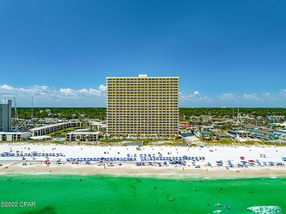 Have wine time on the oversized balcony of this 15th floor 2 bed/2 bath condo while taking in the absolutely STUNNING sunset views from basically anywhere you stand. There are also 2 twin beds in the bunk area. New roll down solar shades, new washer/dryer. Move in ready for you or your vacation guests. Complex features 2 outdoor pools, kiddie pool, 2 hot tubs, fitness center, game room, & 3 elevators. Also a Tiki bar with food & drinks along with poolside wifi & the beach is just a few steps away. Close to the state park, shopping, & entertainment. Don't let this one get away!!