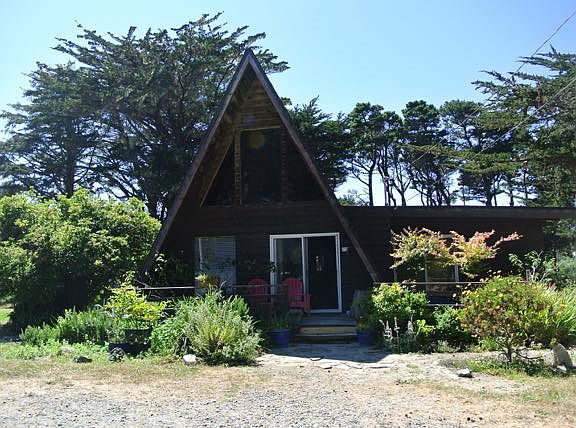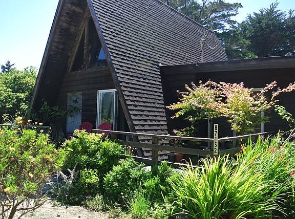 A-frame chalet beach house with 3 bedrooms, just a rock's throw to Devil's Kitchen State Park! Ocean view from 2nd story. Nearly 1 acre of level land can be further developed w/ city water & power, septic. CD10 county zone allows vacation rental, duplex & some commercial. Property history formerly "Natureland Resort" known for its windmill & Swiss Chalet Cabins in the 1920's. This property has good warm sunlight for gardening, no gorse, and you can walk to beach by a neighborhood beach path.