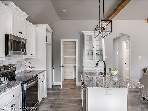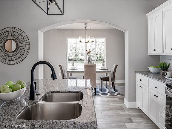 Simple off white brick with black trim, black windows and white picket fence with landscaping will make you proud to call this one home. Step inside to find an open floor plan, separate dining, modern finishes, custom cabinetry and large kitchen island. Enjoy the covered extended living area for outdoor entertaining. Nearby shopping schools restaurants, churches, financial institutions with convenient access to I-540, I-49 and appx 10 min to Chaffee Crossing.