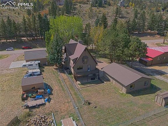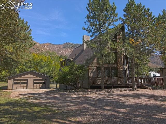 This amazing home is your private mountain getaway nestled in the cozy community of Chipita Park, just 20 minutes to the west of Colorado Springs. This home features 4 bedrooms, 3 bathrooms, and a 4 car garage. As you enter the home, the first thing youâll notice in the huge wall of windows is the natural light. The home has a rustic, mountain feel, but with modern upgrades such as granite countertops in the kitchen and stainless steel appliances. Also on the main level is room for dining and entertaining, and a wood burning fireplace for those cool mountain nights. In addition, there are two bedrooms on the main level with a walk out deck and an updated bathroom. Upstairs youâll love the large loft with beautiful soaring vaulted ceilings that takes full advantage of all the natural light from the huge windows in front of the house. Also, on this upstairs level is the master bedroom. Then from the master bedroom, up the stairs is a private retreat or office. The walk out basement has additional living space, the 4th bedroom, and laundry room. The home sits on just under an acre, which is perfect for your RV or boat. The 4 car garage has plenty of options, as it is almost finished to be an additional apartment to rent or for guests, or you can transform it back to a a garage with additional space for a workshop. Minutes away from the road to the top of Pikes Peak, catamount and Crystal Creek Reservoirs, Santaâs workshop, and some great hiking trails.