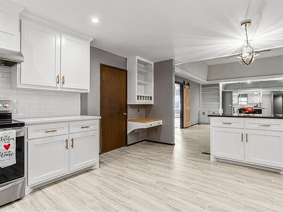 MOTIVATED SELLER! Gorgeous contemporary remodel! The open concept kitchen, dining & living area is beautifully appointed with new cabinets, appliances, quartz countertops, paint, wood look tile, and the ever popular barn doors! The second living room is HUGE, and has a bar, sink & wine fridge as well as a built in counter with charming original tile. The half bath has also been remodeled and is located between the kitchen and second living area. The master bathroom has body jets & a rain shower head and wood look tile in the shower. This house also has new windows, toilets, blinds, & ceiling fans. There are 2 rooms upstairs, one of which could be an office or craft room, complete with built in file cabinets. The bonus room upstairs could be used as a theater, gameroom or kids playroom. Backyard has a covered patio and is terraced with beautiful landscaping! Fully fenced yard. Lansbrook has a lake, playground & walking trails and security that patrols the neighborhood.
