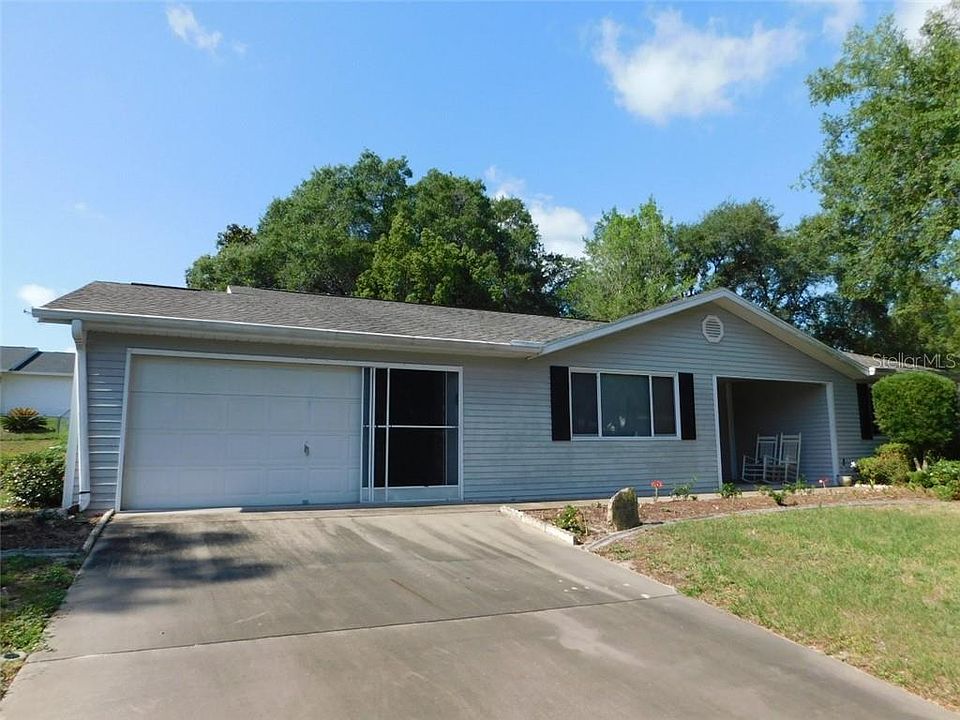 Enjoy the active lifestyle living in this 3 bedroom, 2 bath, 2 car garage ranch style home. Open living room flows into Florida room. Kitchen overlooks the dining area. Secluded Inside laundry within unique storage room currently used for crafts. Split bedroom plan. Master suite features bath with skylight, double sinks, tub and separate step in shower. Spacious 2nd bedroom and 3rd bedroom with walk in closet share 2nd bath with tub/shower. Roof 2003, HVAC 2014. Roomy 2 car garage. Cozy front porch and a side screened lanai for relaxing overlooking the backyard, completes this home. Located in the popular gated 55+ community of Oak Run Country Club. Six pools, two fitness centers, a variety of many other activities and clubs to join. Plus extra available activities such as playing the 18 hole Royal Oak golf course and enjoying the club's restaurant. Convenient to all your needs. Your home in sunny Ocala, Florida found!