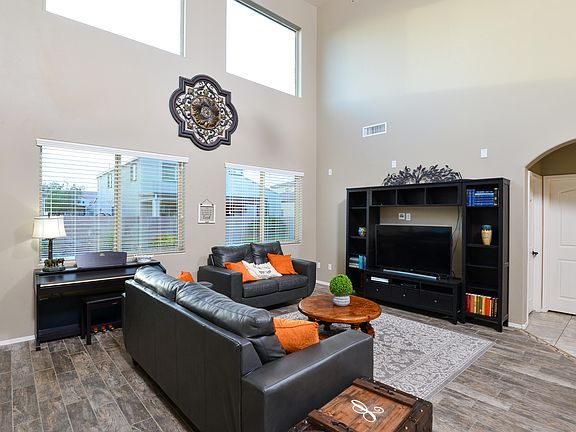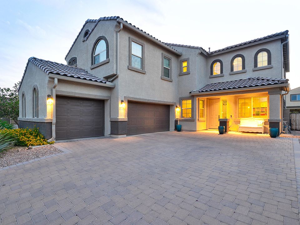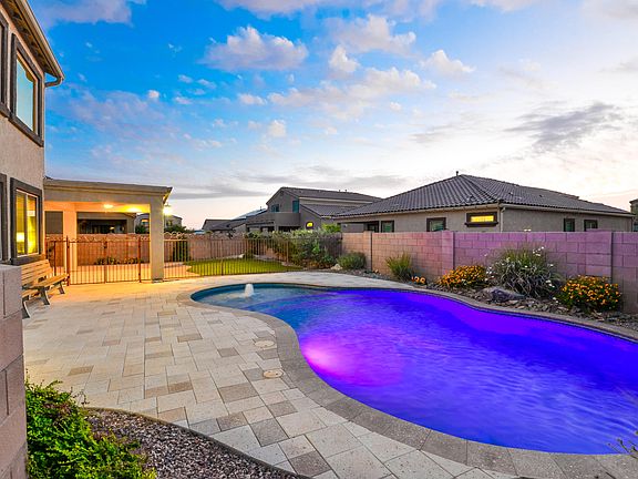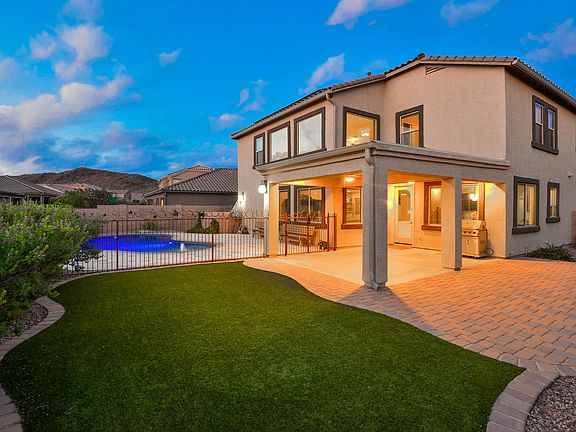 * VIEW VIDEO: https://my.matterport.com/show/?m=bjdGJxiZWPU&brand=0 * Discover style and function in this gorgeous Saguaro Bloom home! Large windows maximize natural light throughout. Stylish finishes including a showpiece wood/iron stair railing, Shakerstyle interior doors, and more. Plenty of flexible-use space + main level bedroom and full bath, perfect for guests! Island kitchen with granite counters and ample storage/workspace. A centralfamily room is perfect for gathering, featuring soaring ceilings and lots of windows for a light-filled space! Upstairs is a comfortable loft area, three bedrooms, and generously-sized owner's retreat with mountain views. Enjoy weekend relaxing or entertaining in the gorgeous backyard complete with salt-water pool, extended covered patio/paver extension, artificial turf for year-round green grass and mountain views.