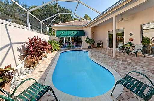 Enjoy all what this courtyard home has to offer, including a beautiful private wooded back view. There is a separate guest suite with a Murphy bed, a full bath and sliders to the pool area. The heated fiber tech pool has a newer pumpand is accessible from most rooms. The kitchen, with upgraded Corian counters, has stainless appliances, a new big refrigerator with the freezer at the bottom, a new stove and dishwasher, display cabinets and lights under the counter. The master bedroom suite has a big walk-in closet, new carpeting, 2 sinks, a walk-in shower and a garden tub. Other great features: crown moldings; awnings; silouette shades; newer washer and dryer; new 2010 A/C and water heater; new 2012 (second) A/C for the guest house; new paint; newer courtyard pavers.