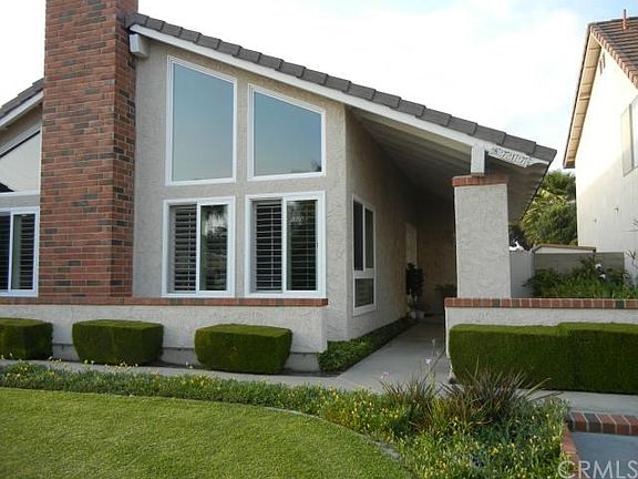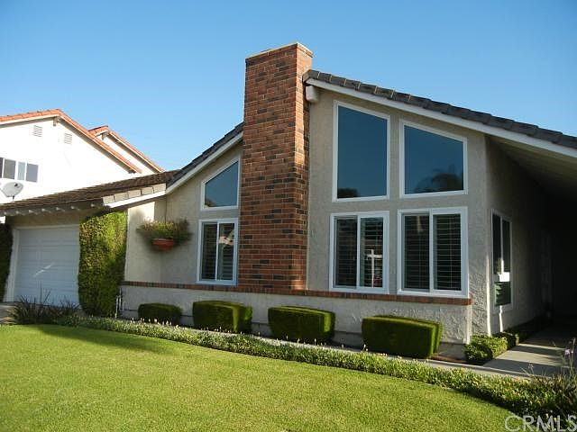 Most popular floor plan in Greenbrook. 4 bedrooms and 2 bath on a single story home on a cul-de-sac location. This floor plan is open with lots of lights, cathedral ceilings and fireplace in both living room and family room. Newer double pane windows, sliders throughout and plantation shutters in the living room area. Copper plumbing and copper wiring. All the switches has been replaced. High baseboards, updated kitchen with solid oak cabinets. updated bathrooms with corian cabinets and tile flooring. Big backyard with many fruit trees, apricot, nectarine, pink grapefruit, peach and plum and block wall. There are solar panels for water and space heating so your gas bill is very low. The award winning Courreges elementary school is in the tract only couple of blocks away. Greenbrook offers olympic size pool for swim team for the the kids, many different activities, park and lot's of greenbelt to walk your dogs. Close to beach, only bike away, shopping, and freeways. It's a truly a nice place to live.