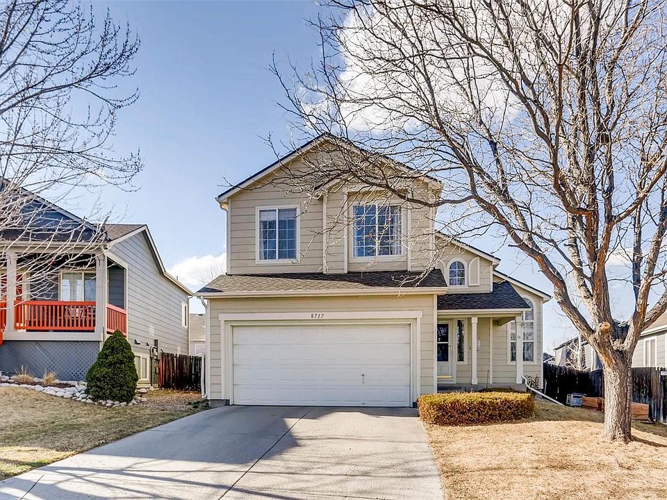 This charming 2 story home is nestled in a quiet cul-de-sac. The spacious home has 3 bedrooms and 2 full baths upstairs and a half bath on the main floor. The large family room has soaring vaulted ceilings and a cozy gas fireplace. Hardwood floors, newer carpet and a nice open floor plan makes you feel right at home. The numerous windows allows for an abundance of natural lighting throughout this home. Entertain friends and family in the large dining room, adjacent to the kitchen and spacious outside deck. The yard is fully fenced, and has a sprinkler system. This home provides a new furnace and hot water tank that was installed in 2016. A new roof was placed in 2017. All appliances are included, even the washer & dryer and a freezer. There are no monthly HOA fees to worry about here. Easy access to E-470, great shopping, restaurants, entertainment, local parks, and open spaces are all close by. This home has it all and is a must see!