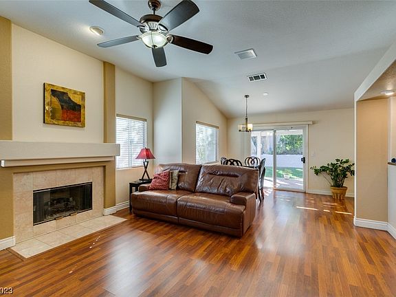 Welcome home! Beautiful 1 story home in Summerlin. 3 Bedroom, 2 Bath, Open floor plan with 10' vaulted ceilings. Includes: laminate wood flooring throughout, Upgraded kitchen cabinets and granite counters. Cozy gas fireplace. Beautiful landscaped private back yard. Close to parks, shopping and dining.
