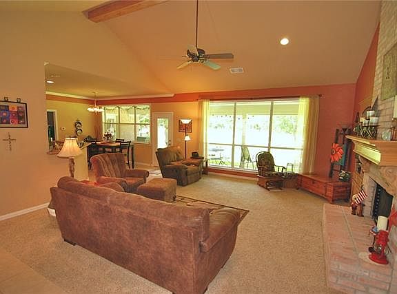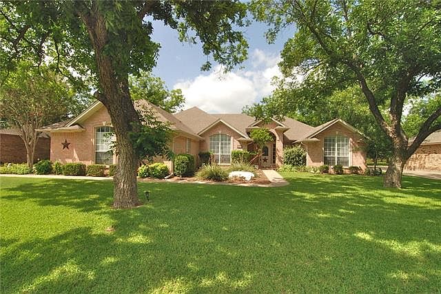 Pecan Plantation home on the Orchard. Very spacious floor plan, formal dining,vaulted ceiling in living with brick FP, built-ins, nice kitchen with breakfast bar. Plantation shutters, and crown molding throughout the house . Landscaped, huge pecan trees, sprinkler system. 2 car garage + golf cart storage. Enjoy all the country club amenities while you feel like your in the country.