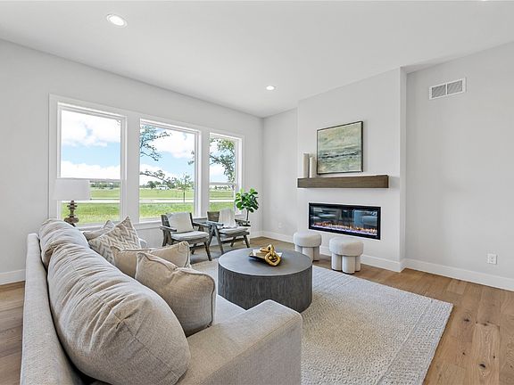Over half an acre homesite situated in the heart of Prairie Landing. Buyers love this floor plan for the tall ceilings, large windows, and open concept space. This property is complete with engineered hardwood flooring throughout the great room, built in fireplace, and a mix of 9' and 10' ceilings. Enjoy sunsets and grilling on the over-sized covered patio. This extra roof extension will protect you year round from sun, rain, and snow. The kitchen boasts a large soapstone island, quartz permieter, and soft-close custom cabinetry. The walk in pantry is perfect for quick lunch making or meal prep. The built in coffee bar makes a perfect beverage depot with outlets and extra counter space. The laundry room is conveniently located on the main level with built in drop zone space for bags and jackets. The basement is complete with a 4th bedroom, 3rd bathroom and tons of storage space.
