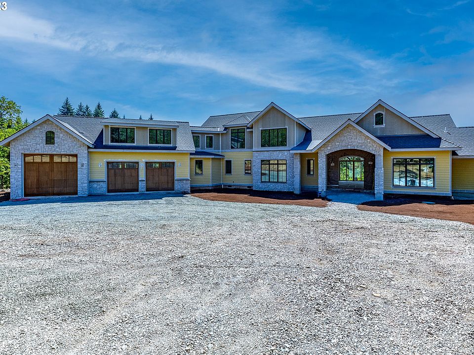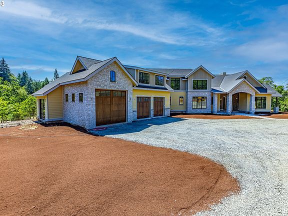 From the moment you enter this exclusive, gated acreage property, you'll be welcomed by a tree-lined driveway that takes you to the home's grand entrance. As you step through the impressive arched front doors, you'll be greeted by an open-concept floor plan equipped with expansive living space and westerly views. Light floods this home at every turn with soaring ceilings and large wood windows in every room. Whether hosting an extravagant dinner or quiet family meal, the kitchen and dining space won't disappoint. The large main level primary suite is a retreat unsurpassed with its high ceiling and large doors leading to a private covered patio to relax and enjoy the scenic views. A well-appointed primary bath with dual sinks, soaking tub, large shower, and an extra-large walk-in closet. A guest bedroom & bath also resides on the main level along with a flex/3rd bedroom. The upstairs offers 2 additional bedrooms and a full bathroom in addition to a common area loft and a flexible bonus room with closet. The home also offers a thoughtfully designed, sizable 3+ car garage that features ample room for parking your RV/boat and separate side access for your ATV. The many private covered patios along the back are the ideal vantage points to savor the breathtaking views and take in the amazing westerly sunsets while enjoying the utmost privacy. And the location of this property in West Eugene offers the perfect balance between seclusion and accessibility. While you enjoy the peace and tranquility of your expansive estate, you're just a short drive away to the services and conveniences of the city.