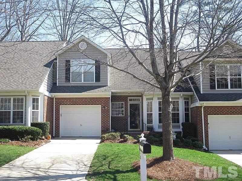 ALL BRICK townhome in prime N Raleigh location! Open floor plan. Hardwood floors in foyer. Large living room features cathedral ceiling & corner gas log fireplace. Separate dining area. Bright & open eat-in kitchen. 1st floor master suite includes walk in closet, dual vanities and walk in shower. Upstairs offers 2 spacious bedrooms, full bath + loft area. 1 car garage. Private backyard.