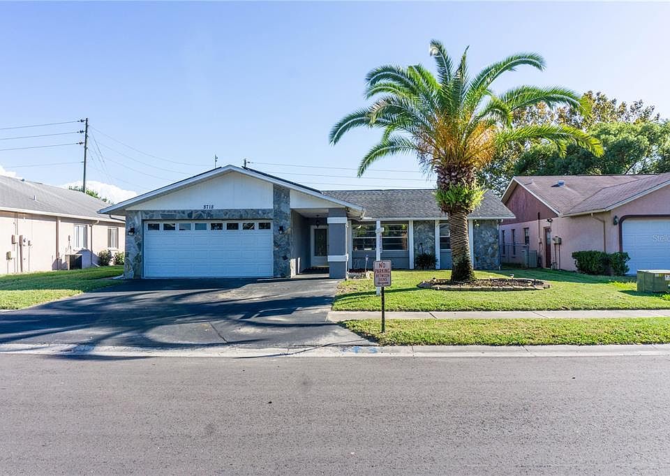 Be Quick to grab this spacious 3 bedroom, 2 full bath home. Sunken Living Room, Dining Area right off the Kitchen. You will love the beautiful workable kitchen with tons of counter space and loads of cabinets. The Family Room, is very spacious too split bedrooms, with built-ins that could be removed. There is a 14 x 12 Enclosed Porch also. Walk outside to the enclosed Pool Area, (Pool needs to be refurbished) Sold As Is. and the private backyard. There is a detached garage or workshop for storage, or just a man's space. The inside and garage was recently painted, the house is move in ready condition. This is very close to the Elementary School, and there is a neighborhood gate steps away from this property that cuts thru to the school. There is two entrances to this subdivision, one off SR 52 and the other Little Road. Permits show Air Conditioning change out 2017 and Re Roof 2007. 11/13/2021 ** 4 OFFERS All new duct work 2019. Good Size Washer/Dryer in 2 Car Garage. Original owner, in fact floor plans are in the drawer when built. This is a AS IS Sale . No repairs other than 4 Point Requirements. This is a nice home waiting a new family. The Solar System on roof ,was purchased l in 2019 . It runs $158.75 per month to Sunrun. This would be assumed by the new owner. 11/13/2021 **4 OFFERS HAVE BEEN RECEIVED OVER ASKING PRICE - SELLER WILL BE MAKING A DECISION BY 6:00 PM 11/14/2021 ON ACCEPTANCE. NO OTHER OFFERS WILL BE ACCEPTED AFTER 4:00 pm ON 11/14/2021.