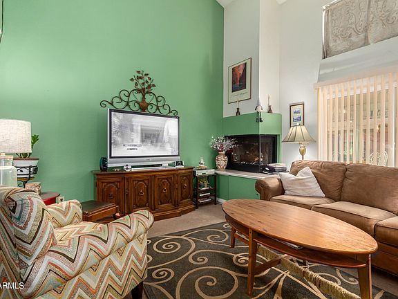 Look no further! Make yourself at home in this charming 3-bedroom townhouse nestled in the Fountain Shadows Community. Explore inside to find a welcoming living area showcasing designer color palette, high-vaulted ceilings, soft carpet in all the right places, and a lovely fireplace perfect for cozy nights at home. The immaculate kitchen boasts wood cabinetry, built-in appliances, neutral tile flooring, and a pass-through window equipped with a breakfast bar. The primary bedroom features a generously sized closet and a private bathroom for added comfort. Discover the quaint backyard offering a covered patio and great potential for adding your personal touch! What are you waiting for? A deal like this won't last long!