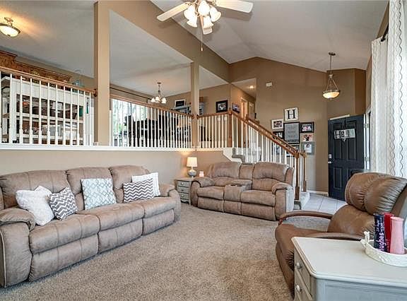 Fabulous bright and airy home on cul-de-sac lot! Open, bright and airy entry leads to living area with fireplace and vaulted ceiling! Spacious kitchen overlooks living area and offers tons of pantry and prep space! Eat-up bar and room for nice-sized kitchen table! Walk out to deck overlooking trees and neighboring undeveloped land! Lower level offers second family room and is a walk-out! Amazing storage in unfinished sub-basement! Kitchen appliances stay! Top Rated Hawthorne Elementary / Park Hill Schools!