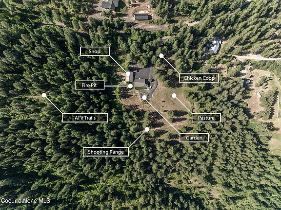 A True North Idaho Gem! Completely Remodeled Home on 11 Usable Acres with Breathtaking Mountain Views in Mica Flats! Escape to a truly special property w/unrivaled privacy & tranquility, 2,724sqft, 4bed, 3bath, primary & JR suites, high-end features include travertine flooring, A/C, vaulted great RM w/exposed beams & cedar ceilings, towering gas fireplace & panoramic windows, chef's kitchen w/granite, solid Cherry wood cabinets, DBL ovens, custom island, LRG BBAR & high-end SS APPS, dedicated laundry, spacious primary suite w/walk-in closet, DBL vanity, LRG jetted tub & travertine surround shower! Picture perfect grounds include asphalt drive, LRG trex deck w/AMAZING views, impressive garden w/full drip irrigation, hot tub, fruit trees, fire pit, chicken coop, LRG fenced pasture, ATV trails, private shooting range, 30x45 heated shop, 20KW generator, 18GPM well & not a neighbor in sight! Close in acreage offering unrivaled mountain views, a true private oasis located 10 minutes to CDA!