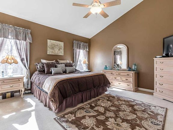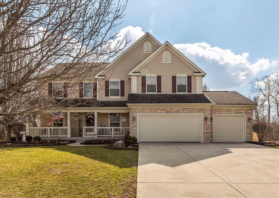 EVERYTHING you could ever think of wanting!! This home sits on a private wooded lot in a cul-de-sac with walking to a reserve area. All the upgrades...3 car garage, granite countertops, 9'' entry and cathedral ceiling 1st floor, 21x39 Wood Deck with 5' wide stairs, Tile kitchen floor, Gas fireplace with blower, Iron railing, surround sound speakers in the lower level rec room, upgraded faucets throughout home, Kitchen has plantation shutters and reverse osmosis system for sink, 2 hot water tanks (gas) less than a year old, air purification system, water softener system, Trane furnace, poured foundation, and glass block windows in basement. Vents cleaned 1 yr. ago. This is a very well maintained home!