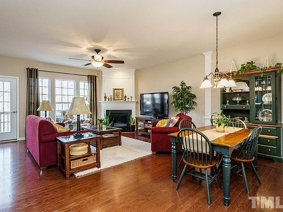 Spacious brick home @ Cary Crossroads! Hardwood floors main living areas. Fabulous kitchen w/ loads of cabinets, large island, granite counters, stainless appliances. Large rooms, great closets. Master w/ separate vanities, oversize shower + tub. Two car garage w/ storage. Deck + paver patio backing to woods. Huge bonus room or 4th bdrm. Laundry room w/ cabinets. Refrigerator stays! Walk to restaurants, movies & shopping!